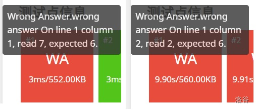 注:事实上,由如下两次WA的信息可知,输出确实是 66 ——左图告诉我们第一位是 6 ,右图告诉我们第二位也是 6 。